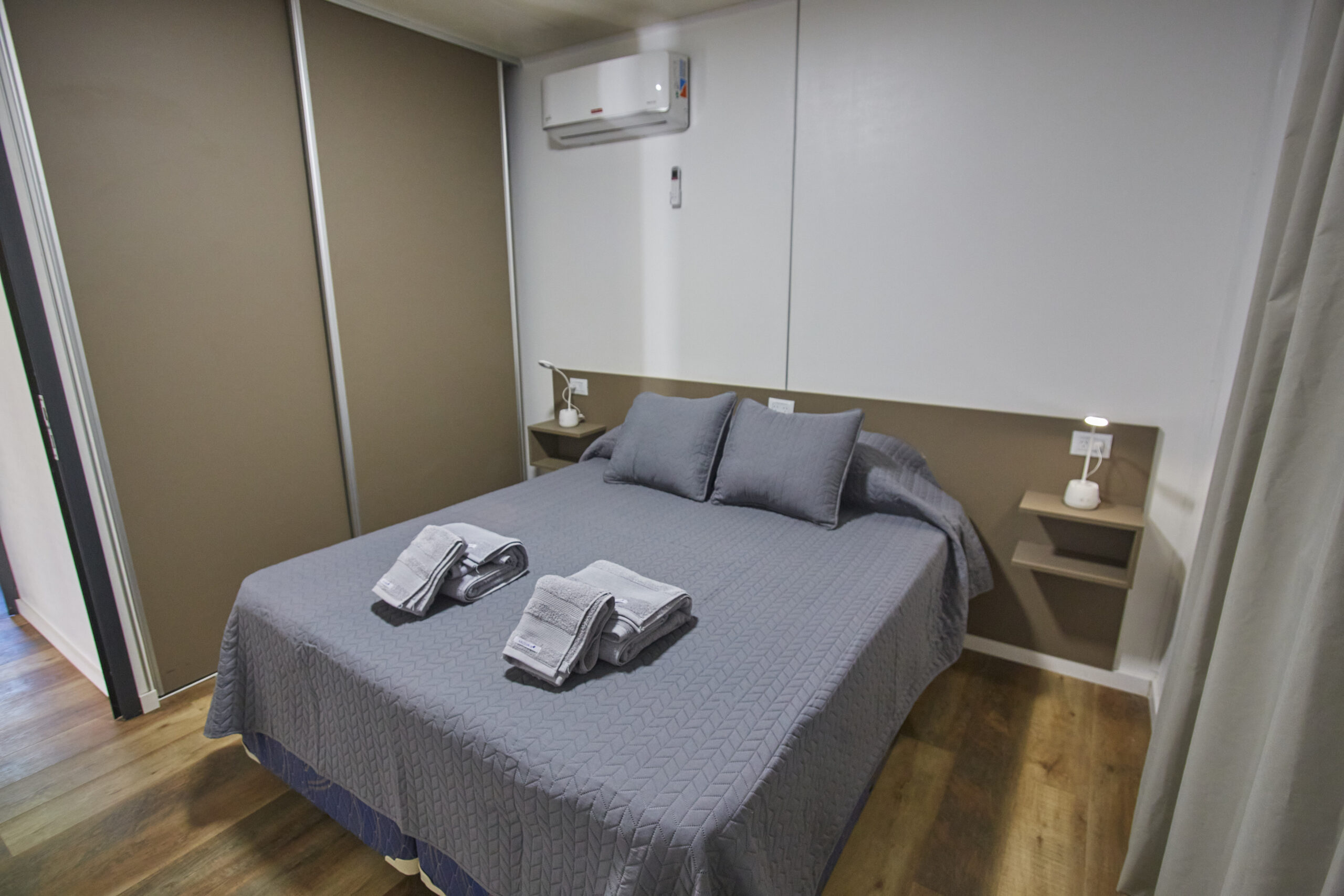 Habitación cuádruple, con cama matrimonial y dos camas individuales.
